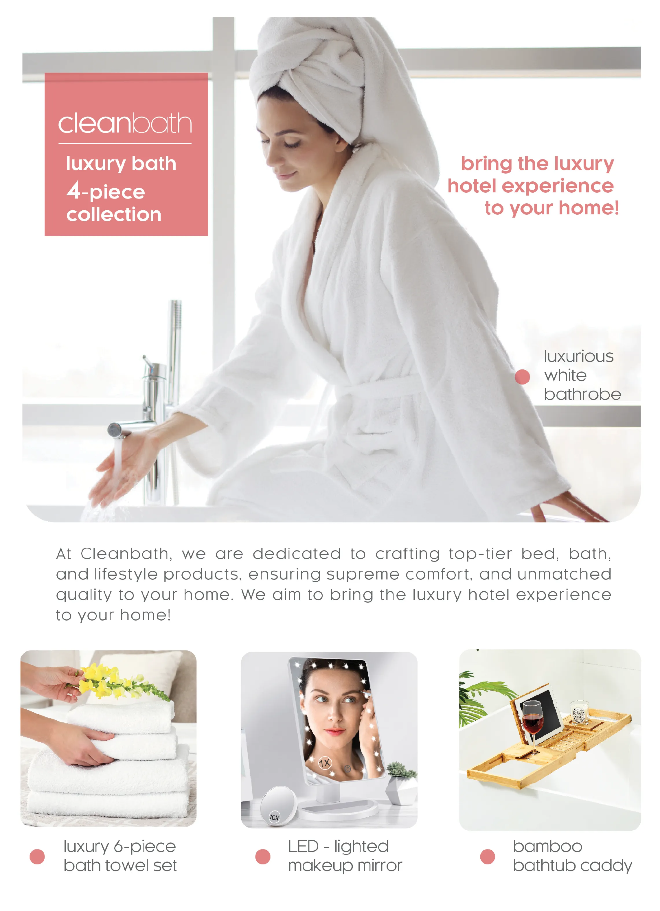 At Cleanbath, we are dedicated to crafting top-tier bed, bath, and lifestyle collections, ensuring supreme comfort, sustainable materials, and unmatched quality for both homes and hospitality. We prioritize quality and adhere to strict quality standards, harmonized with our contemporary designs. We aim to bring the luxury hotel experience to your home!